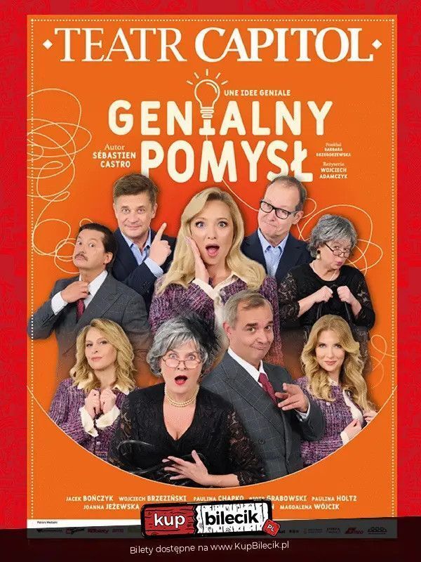"Sztuka Une Idée Géniale / Genialny Pomysł" autorstwa Sébastiena Castro jest reprezentowana przez Agencję DRAMA - Paryż (Francja). Licencja na korzystanie z Utworów została udzielona przez Stowarzyszenie Autorów ZAiKS.